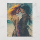 Two beautiful women in love stand on a beach in a mixed media painting style AI generated art