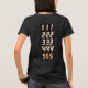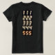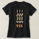Women's black t-shirt with the numbers 111,222,333,444,555 in orange on the front and back.