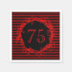 This beautiful, women's 75th birthday product has a red, swirly frame with leaves and vines on a black and red striped background.