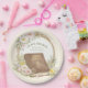 This plate design has a Bible surrounded by a wreath of pink flowers in a wreath with a pink striped background with text that says "Women's Bible Study." You can personalise with your group's name.