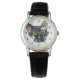 Women's Black Cat Vintage Black Leather Strap Watch - Original Artwork by Chris Vanderhoof