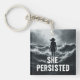 A striking black-and-white wall art print featuring the silhouette of a woman standing strong amid turbulent waves. With her hair blowing in the wind and posture upright, she faces the storm with unwavering resolve. Bold typography beneath her reads: "SHE PERSISTED", symbolising strength, endurance, and courage in the face of adversity. The dramatic seascape emphasizes the power of inner strength and resilience, making this piece a bold statement for empowerment.