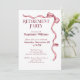 Create a lasting impression with our sophisticated women’s retirement party invitations. "Retirement Party" and party details are elegantly scripted in a modern serif font on a white background, enhanced with a bright, long pink bow in the corner. Easily customise the name, date, address, and RSVP details. The back continues the elegant theme with the same border and pink bow, offering additional information space. Perfect for family and corporate organizers. Make her retirement celebration unforgettable—get your modern, elegant invitations today!