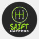 Womens Funny Shift Happens Manual Car Stick Shift Classic Round Sticker