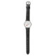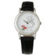 The watch has a BLACK LEATHER STRAP and the face is WHITE with BLACK RED GREEN colours.