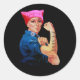 Ways to oppose Trump start with morning coffee and being Feminist AF! Take a stand with powerful Women's March art. Add your voice, resist Trump, fight, and keep marching for a pinker, saner, and more democratic America. Advocate for American values and trump hate with epic nasty. Women's marches provide the power for sisterhood, solidarity, freedom of speech, and for human rights. The graphic on the sticker is an iconic Rosie the Riveter image sporting a girl power urban forearm tattoo that states "RESIST" and a pink kitted hat with two kitty cat ears. Dress like a woman of vision or the men behind them in a country of immigrants with this progressive political protest sticker for feminists.