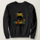 Womens One Thankful Nanny Leopard Messy Bun Fall T Sweatshirt