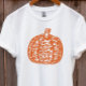 White T-shirt with bold orange pumpkin for women and Girls, with customisable back text.