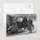Old World War One photo of three women soldiers in uniforms and trench coats standing by official automobile.