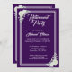 Make your retirement celebration stand out with our Elegant Feminine Retirement Party invitations. These beautifully designed cards feature a tranquil purple background with a classic white triple line border and exquisite white roses in the corners. The elegant script for "Retirement Party" and simple serif font for the details make customisation easy and stylish. Perfect for family and corporate events alike, these invitations also offer a space on the back for any extra information. Celebrate a milestone with the perfect blend of elegance.