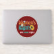 Pro Choice laptop sticker features retro style "women's rights are human rights" text with daisy and sunflower floral graphics on dark red background.