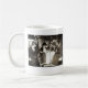 Women's Suffrage Mug features image of suffrage leader Alice Paul sewing star on flag representing states that had ratified 19th Amendment granting women right to vote. Other image shows suffragettes posting notice on Long Branch, New Jersey boardwalk for rally.