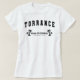 White Torrance women's T-Shirt to show that you are proud to be from this beautiful city. This letter print curved text design features "Torrance" in a slab type font with "California" and "Golden State" in stylish title fonts with palm trees on either side.