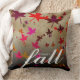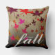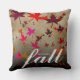 Celebrate one of the most breathtaking seasons of change with this throw pillow, which features a multi-coloured pattern of falling autumn leaves, rendered on a light brown faux canvas background, with the word "wonder fall" in the lower right corner.