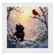 A serene winter landscape with a tiny black kitten and a vibrant red robin against a backdrop of frosty foliage and softly falling snowflakes, evoking a sense of magic and wonder in a cinematic, epic style reminiscent of classic matte paintings and atmospheric digital art.