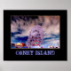 A psychedelic/rock-concert-poster-inspired print featuring the Wonder Wheel Ferris Wheel against a dramatic sky. ** A DREAMLAND GIFTS Item. ** ~ See the matching blank greeting card at http://www.zazzle.com/wonder_wheel_sky_psychedelic_blank_card-137241493161365041 . ~