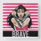 Check out Wonder Woman with her bracers raised to defend, accented with gold stars. Personalise it with your own words by typing in the template field provided!