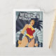Wonder Woman standing tall with her fists at her side. In the background you can see the tall city buildings and skyscrapers, against a retro sunburst and Wonder Woman's name in the sky.
