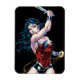This New 52 comic book art features Wonder Woman swinging her sword, as seen in the comic books when she was fighting off an army of Parademon.