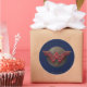 Check out this embossed Wonder Woman symbol in red, laid atop a disc of golden concentric circles.