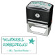 This encouraging rubber stamp design features the inspiring feedback message "WONDERFUL CORRECTIONS!" and a personalised tutor's name. It also features a decorative star shape. It could be used by a teacher, educator, or tutor when marking assignments, to indicate that the student has done a great job.