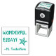 This positive rubber stamp design features the inspiring message "WONDERFUL ESSAY!" and a customised teacher's or educator's name. It also features a decorative star shape. It could be used by a teacher, educator, or tutor when marking assignments, to acknowledge that a student has done well.