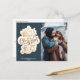 send holiday wishes with this christmas greeting card with elegant faux gold typography and blue colours. The text and photo can be edited.