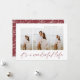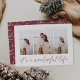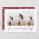 Elegant holiday photo card features three vertical photos in a collage layout. "It's a wonderful life" appears beneath in soft muted red handwritten script lettering. Personalise with your name(s) and the year at the top. Cards reverse to a botanical patterned background.