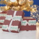 A festive holiday wrap that's suitable for gift wrapping of any sort. Cranberry background with oval graphic that reads "It's the most wonderful time of the year"