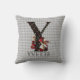 Whimsical Wonderland themed throw pillow features vintage Alice and the Queen of Hearts character colour illustrations with large letter / initial Y with a black/gold/red card suites fill pattern on a vintage grey harlequin background. Personalise further with customisable name text