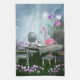 Cute modern Alice in Wonderland mad hatter's tea party custom kitchen towel with a beautiful elegant pink flamingo standing on a stool looking at the tea pot and tea cups on the tea party table set in a pretty, magical garden with lovely pink and purple flowers. A stylish, whimsical, trendy, chic, original and unique gift for women. A classy gift for Mum on Mother's Day, Christmas or Birthday. Some elements from bee creations http://beecreation1.blogspot.com If you need any assistance customising your product please contact me through my store and I will be happy to help.