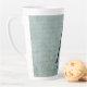 Whimsical drinkware design for Alice in Wonderland lovers of all ages features capital letter / initial A with black and blue harlequin fill and original White Rabbit illustration that has been tinted, on a distressed vintage floral and handwriting blue tinted background. Personalise with name or other message