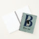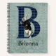 Whimsical bullet journal design for Alice in Wonderland lovers of all ages features capital letter / initial B with black and blue harlequin fill and original White Rabbit illustration that has been tinted, on a distressed vintage floral and handwriting blue tinted background. Personalise with name or other message.
