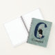 Whimsical design for Alice in Wonderland lovers of all ages features capital letter / initial C with black and blue harlequin fill and original White Rabbit illustration that has been tinted, on a distressed vintage floral and handwriting blue tinted background. Personalise with name or other message. Default for this notebook is a sketchbook insert, however, you can change that to a variety of others including bullet journal, grid or recipe pages.