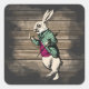 Mint & burgundy tinted version of original vintage White Rabbit illustrations from Alice in Wonderland on  distressed wood background