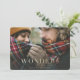 Wonders of his love plaid photo Christmas card. Gold effect script text. Colour of the tartan check backer can be changed.