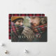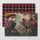 Wonders of his love plaid photo Christmas card. Gold effect script text. Colour of the tartan check backer can be changed.