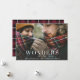 Wonders of his love plaid photo Christmas card. Gold effect script text. Tartan check background colour can be altered. Modern classy elegant christian religious design.