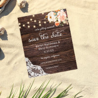 Rustic Wood String Lights Wedding Save the Date Invitation