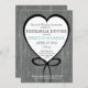 Grey and Black Wood look rehearsal dinner invitation with heart frame. Change text as needed.