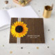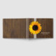 Rustic chic wedding guest book done in a dark stained looking wood. Graphics of white lace ribbon and a big yellow sunflower, decorate the left front of the book. Personalise the white text fields for your special day.