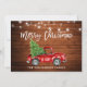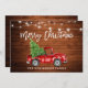 Rustic Wood and String Lights - Brush Script Watercolor Vintage Red Truck with Christmas Tree - Merry Christmas Card