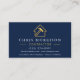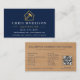 Wood Building Metallic Navy Blue Gold QR Code Business Card