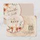 Make it easy for your guests to RSVP with this rustic wood cut grain QR code wedding response card, designed to resemble a tree trunk slice with natural wood rings. Featuring boho floral watercolor accents in warm terracotta tones, this unique and creative wedding RSVP card is perfect for barn, farmhouse, country, outdoor, and forest weddings. With a scannable QR code for online RSVP and guest count tracking, this modern yet timeless design blends organic charm with convenience. Ideal for couples looking for a truly engaging and romantic wedding invitation suite with a touch of vintage and boho elegance.