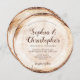 Inspired by the wood cut slab you often see at beautiful, romantic, rustic weddings, I wanted to design a round card imitating the wood slice, showing off the tree rings. Customize the script type of the bride and groom names plus wedding date, and location.