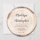 Create a Handlettering Script Wood Slice Rustic Wedding Invitation that captures the beauty and charm of rustic weddings. This round card is inspired by the wood disc slice slabs commonly found at romantic and rustic wedding settings, showcasing the natural beauty of tree rings.