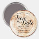 Personalise these unique wedding Save the Date circle magnets. It features a printed wood grain cut disc, perfect for your rustic, natural, fall, or botanical-themed weddings. Customise this editable template with your wedding date, location, full names (bride and groom) for your upcoming wedding.