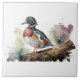 Wood Duck On a Solid White Background On A Log Ceramic Tile
