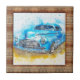 Wood Effect Framed Abstract Art Car Ceramic Tile