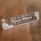 Graphic desk nameplate done in a lovely dark wood look, with white stylised flowers on either end of the plaque. Custom white text is ready to personalise to read anything you want. Makes a great gift idea.